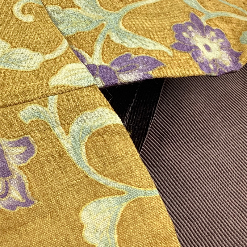 本品は古渡更紗の柄をモチーフに京都の老舗染元「岡重」で型友禅の技法で染められた更紗です。